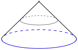 - Der topologische Kegel über einem ausgefüllten Kreis ist der klassische Kreiskegel (siehe Abbildung).