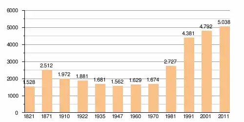 Die Sozialgeschichte der Gemeinde ist geprägt durch Bauern und Handwerker. Mit der Industrialisierung des Landes sowie dem Strukturwandel nach dem Zweiten Weltkrieg ist heutzutage der überwiegende Teil der Einwohnerschaft im Dienstleistungssektor beschäftigt.[3]
