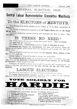 1900 wurde Hardie während der Khaki-Wahlen als Vertreter des Wahlkreises Merthyr Tydfil and Aberdare erneut ins Unterhaus gewählt. 1908 trat Hardie als Führer der Labour Party zurück, sein Nachfolger wurde Arthur Henderson. In seinen letzten Lebensjahren fiel Hardie als engagierter Streiter für das Frauenwahlrecht, das Ende der Rassentrennung in Südafrika und das Recht der Selbstregierung für Indien auf. Den Ersten Weltkrieg lehnte Hardie als Pazifist ab. Nachdem sein Versuch, gemeinsam mit den Sozialisten anderer Länder ein Ende des Krieges durch einen internationalen Generalstreik zu erzwingen, gescheitert war, betätigte er sich als Unterstützer von Kriegsdienstverweigerern und Organisator von Antikriegs-Demonstrationen. Er starb 1915 nach mehreren Schlaganfällen in Glasgow.