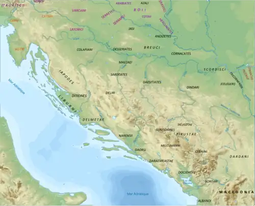 Es ist wenig über die Geschehnisse im illyrischen Hinterland bekannt, gesichert ist jedoch, dass der erste von den Kelten besiegte Stamm die Autariaten waren, die zuvor über einen Großteil des Zentralbalkans mit Schwerpunkt im Moravatal geherrscht hatten.[2] Die Bedeutung der gerissenen keltischen Taktiken offenbaren die Angriffe auf den Stamm der Ardianer (siehe auch Liste der illyrischen Stämme).