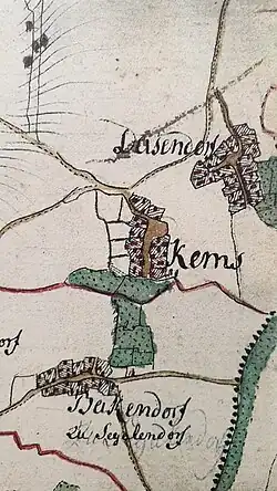 1789 wurde Kembs als Kems auf der Varendorfschen Karte eingezeichnet. Im Zuge eines Vergleiches zwischen Dänemark-Holstein und Lübeck zu Beginn des Jahres 1802 und des Reichsdeputationshauptschlusses kam Kembs um 1806 hoheitrechtlich zum Herzogtum Holstein[9] und wurde als sogenanntes Lübsches Stadtstiftsdorf besonders verwaltet. Steuern und Abgaben wurden durch das Amt Cismar verwaltet, Militärangelegenheiten durch den Güterdistrikt Oldenburg und die Gutsobrigkeit und polizeilichen Geschäfte durch beauftragte Notare. Bauernvögte übernahmen die interne Verwaltung und die Vertretung des Dorfes nach außen. Nach dem Deutschen Krieg 1866 wurde Kembs 1867 Teil des neu gegründeten preußischen Provinz Schleswig-Holstein. Kembs wurde eine preußische Landgemeinde und gehörte bis 1937 zum Amtsbezirk Putlos. Es gehörte zum Kirchspiel Heiligenhafen auch die Gerichte waren dort[10]. Seit 1. April 1937[11] ist Kembs Teil der Gemeinde Gremersdorf. Die Freiwillige Feuerwehr Kembs wurde 1934 gegründet und wird jetzt zusammen mit dem Nachbardorf Dazendorf als Freiwillige Feuerwehr Kembs-Dazendorf unterhalten.