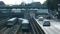 Die Haltestelle Kennedybrücke / Hietzing U wird von den Straßenbahnlinien 10 (seit 2. September 2017 von hier zur neuen südlichen Endstation Unter-St.-Veit, Hummelgasse, verlängert) und 60 (seit 2. September 2017 von hier zur neuen nördlichen Endstation Westbahnhof verlängert) bedient; die Linie 58, die hier seit 1907 fuhr, wurde eingestellt. Weiters haben auf der Brücke die städtischen Autobuslinien 56A, 56B, 58A und 58B ihre nördliche Endstation. Die nach Norden verkehrende Autobuslinie 51A wendet unmittelbar nördlich der Brücke an der Nisselgasse. Die Änderungen vom September 2017 wurden vorgenommen, um auf der Brücke Platz für die Entflechtung der Verkehrsströme zu finden.[3]
