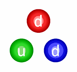- ↑ Die Gesamtwellenfunktion ist antisymmetrisch und damit muss, da der Farbanteil immer antisymmetrisch ist (Gesamtfarbladung Null) bei symmetrischer Raum-Wellenfunktion (Bahndrehimpuls 0) der Spin-Isospin-Anteil auch symmetrisch sein
