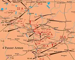 - 16. Armee (152., 38. und 108. Schützen-, 1. und 18. mot. Division)