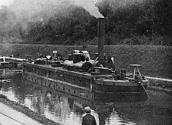- ↑ Carl Victor Suppán: Wasserstrassen und Binnenschiffahrt. A. Troschel, Berlin-Grunewald 1902, Abschnitt: Schleppzug auf Kanälen. (Zugmittel auf Kanälen., Elektrische Kettenschiffahrt am Bourgogne-Kanal. S. 419–420, Textarchiv – Internet Archive).
