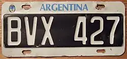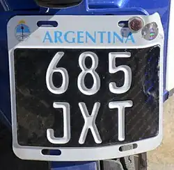 Kfz-Kennzeichen gibt es in Argentinien seit etwa 1900. In Argentinien werden sie chapas patentes, patentes oder dominio genannt. Bis 1972 wurden die Kennzeichen individuell von jeder Provinz zugewiesen, danach zentralisiert und standardisiert. 1994 wurde das Kennzeichen-System erneut geändert, die Aufschlüsselung der Herkunft entfiel.