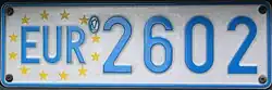 Kennzeichen für Kraftfahrzeuge von Beamten der in Belgien ansässigen Organe der Europäischen Gemeinschaft bestanden bis 2010 aus blauer Schrift und blauem Rand auf weißem Hintergrund. Die Kennzeichen trugen in kleinerer Schrift die Buchstabengruppe EUR in einem gelben Sternenkranz, gefolgt von vier Ziffern.