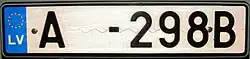 Lettische Kfz-Kennzeichen besitzen schwarze Schrift auf weißem Grund. Seit Lettlands Beitritt zur Europäischen Union am 1. Mai 2004 sind links die zwölf europäischen Sterne sowie die Buchstaben LV (Latvija) sichtbar. Vor 2004 war die lettische Nationalflagge über der Länderkennung abgebildet. Es folgen zwei Buchstaben, ein Bindestrich und eine bis zu vierstellige Ziffernkombination (z. B. AB-1234). Die Kennzeichen wurden 1994 eingeführt und lassen keine Rückschlüsse über die Herkunft des Fahrzeuges zu.
