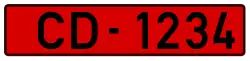 Nummernschilder für Händler besitzen rote Schrift auf weißem Grund. Sie bestehen aus einem Buchstaben, der die Fahrzeugart angibt, einer Zahlenkombination und einer Ziffer am Ende, die das Jahr der Gültigkeit kodiert (z. B. 4 für 2014). Bei älteren Schildern wird diese Ziffer verkleinert und erhöht dargestellt.