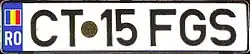 Die aktuellen rumänischen Kfz-Kennzeichen wurden 1992 eingeführt und zeigen links einen blauen Streifen mit den zwölf europäischen Sternen und dem Nationalitätszeichen RO. Danach folgen ein (B für Bukarest) oder zwei Buchstaben (für den jeweiligen Kreis) und eine amtliche Plakette. Rechts davon erscheinen neben zwei (in Bukarest ab 2010 auch drei) Ziffern noch drei Buchstaben. Vor Rumäniens Beitritt zur Europäischen Union 2007 war die rumänische Nationalflagge im blauen Balken abgebildet. Zweizeilige Nummernschilder zeigen den Balken meist in der unteren Zeile.