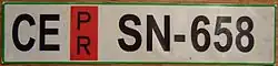 Testkennzeichen zeigen entweder das Wort PREIZKUŠNJA über der Schrift oder die Buchstaben PR innerhalb eines vertikalen roten Balkens.