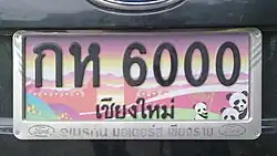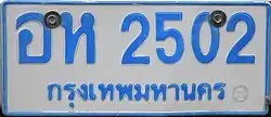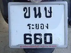 Thailändische Kfz-Kennzeichen entsprechen in der Regel einer Größe von 340 mm × 150 mm. Sie zeigen zwei Buchstaben des thailändischen Alphabets, von denen der erste die Art des Fahrzeuges angibt. Es folgen maximal vier Ziffern. Am unteren Rand erscheint der Name der Provinz, in der das Fahrzeug zugelassen wurde, ebenfalls in thailändischer Schrift. Da in Bangkok bereits alle möglichen Kombinationen nach diesem Schema erschöpft sind, werden seit 2012 Schilder mit einer weiteren Ziffer an erster Stelle ausgegeben. Je nach Verwendungszweck und Fahrzeugart werden verschiedene Farbkombinationen genutzt.