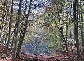 ![]() Mündungsteich des Kieselbachs unterhalb der Kobenhütte am Eschberg, Stadtwald Saarbrücken | ||