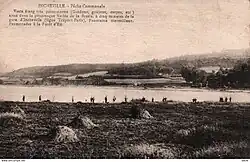In der Torfschicht wurden archäologische und osteologische Funde aus der Bronzezeit III und IV gemacht: eine Axt mit umgefalteten Befestigunsgsflanschen (hache à ailerons terminaux), drei bronzene Schwertfragmente mit flachen Schwertangeln (épée à soie plate) und drei Speerspitzen mit getriebenen Klingen sowie Knochen von Auerochse (Bos primigenius), Rind (Bos longifrons), Pferd, Hund, Wolf und Fuchs.[13]
