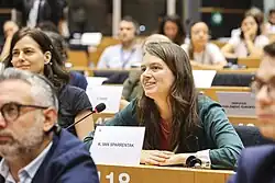 2019 kandidierte Kim van Sparrentak bei den Europawahl auf Platz 7 der Partei GroenLinks. Die Partei selbst gewann 3 der 26 niederländischen Mandate, van Sparrentak erhielt dabei über 26.000 Vorzugsstimmen, sodass sie anstatt die drittplatzierte Eline van Nistelrooij das dritte Mandat gewann.[2][3] Seitdem ist Kim van Sparrentak Mitglied des neunten Europäischen Parlaments als der Teil der Fraktion Die Grünen/EFA. Für ihre Fraktion ist sie Mitglied im Ausschuss für Binnenmarkt und Verbraucherschutz und stellvertretendes Mitglied im Ausschuss für Beschäftigung und soziale Angelegenheiten.[4]