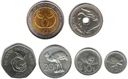 Gültige Münzen gibt es in den Werten 5, 10, 20 und 50 Toea sowie 1 und 2 Kina.