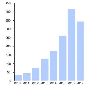 2016 zahlte die Bundesrepublik Deutschland 537 Millionen Euro Kindergeld für 168.400 Kinder, die im EU-Ausland leben sollen. Das entspricht einer Verfünffachung der anspruchsberechtigen Kinder von EU-Ausländern gegenüber 2010.[26]