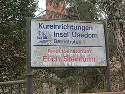 - ↑ Verschiedene Quelle berichten von den Bezeichnungen Reichsbahn-Waisenhort, Eisenbahner-Waisenhort oder Mariaheim, vgl. Stürmisches Usedom III. In: Blog von Birgit. 27. Februar 2013, abgerufen am 27. Mai 2024. Oder Ruinen-Tour 2 - Steinfurth-Heim. In: Geocaching. Abgerufen am 27. Mai 2024.