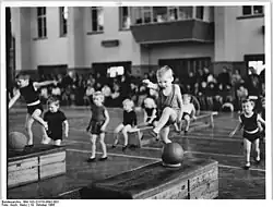 - ↑ Lehrhilfe zur Kampagne Kinderturnen. (PDF-Datei 609 KB) Deutsche Turnerjugend dtj, S. 4–5, ehemals im (nicht mehr online verfügbar); abgerufen am 25. Mai 2012. (Seite nicht mehr abrufbar. Suche in Webarchiven) Info: Der Link wurde automatisch als defekt markiert. Bitte prüfe den Link gemäß Anleitung und entferne dann diesen Hinweis.