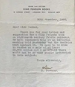 - ↑ Diana Bishop: King Penguins. Their place in 20th publishing. Cambridge 1982, S. 14, unter Bezugnahme auf ein Interview mit der Autorin am 29. September 1981.