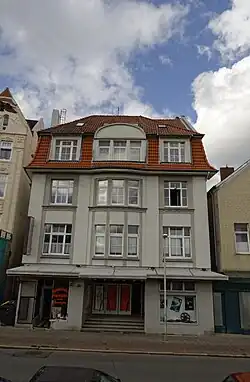 Das dreigeschossige traufständige verputzte Gebäude auf Keller, mit ziegelgedecktem Mansarddach mit korbbogigem Dachhaus und zwei Gauben sowie mit dem eingeschossigen Saalanbau im hinteren Bereich wurde 1907 nach Plänen von Achmet Steinmetz als erstes Lichtspielhaus in Cuxhaven gebaut. Die symmetrische Straßenfassade mit betonter, leicht gerundeter Mittelachse wurde gestaltet und gegliedert durch vier Putzlisenen und einfache Fensterrahmungen.