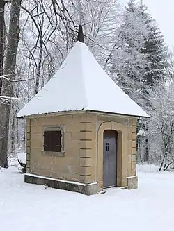 Die 1841 von Johann Grebner[1] gebaute Wegkapelle befindet sich in einer Waldlichtung am Frankenweg. Sie ist das letzte bestehende Bauwerk eines Bauernhofes, der in der wüstgegangenen Einöde Kirchbühl stand.[2]