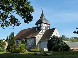 Der kleine, ziegelgedeckte Bau stammt aus dem Spätmittelalter und wurde im 15. Jahrhundert aus Findlingen errichtet. Der in Fachwerkbauweise gefertigte Westgiebel und der westliche Dachturm mit geschwungener Haube stammen wie der Putz des Gebäudes aus dem 18. Jahrhundert.