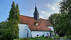 Die schlichte romanische Saalkirche mit ihrem rechteckigen Grundriss und ihrem romanischen Eingangsportal an der Nordfassade, wurde wahrscheinlich 1429/30 in den Hussitenkriegen bzw. 1447/50 in den nachfolgenden Sächsischen Bruderkriegen geplündert und teilweise (Westfassade) zerstört. Da die Gemeinde kein Geld für einen Neubau aufbringen konnte, wurde zunächst 1480 eine kleine Interimskapelle in Form einer Doppelkapelle an die Nordwand der zerstörten Kirche angebaut. Sie besteht aus zwei übereinander liegenden Tonnengewölben, wobei das untere als Gebeinkeller und das obere dem Gottesdienst diente. Das aus romanischen Bauteilen zusammengesetzte spätgotische Eingangsportal der Kapelle mit einer schmiedeeiserner Tür führt noch heute in den als Sakristei dienenden Raum. Erst 1517 wurde die, unter Verwendung der noch erhaltenen romanischen Außenmauern neu aufgebaute Kirche wieder für Gottesdienste genutzt. Die 1994 ausgeführten restauratorische Untersuchungen zur Klärung der Raumfassung (speziell der bereits 1929 freigelegten und restaurierten Teilabschnitte der Wandmalerei) zeigten, dass es sich bei der vermutlich originalen frescalen Wandmalerei, um ein qualitativ hochwertiges Raumprogramm (Bilderbibel) auf allen drei noch aus der Entstehungszeit der Kirche erhaltenen Wandoberflächen handelt. Diese Malerei wurde vermutlich nach der Teilzerstörung bzw. spätestens im Zuge der Reformation übertüncht. Nach der Dachsanierung 1995–96 wurde in den Jahren 2011–12 auch die Fassade erneuert sowie das Mauerwerk trockengelegt.[2] Die Innensanierung begann im Juli 2023 mit dem Austausch des Kirchenfußbodens, ohne das es dabei neue archäologische Erkenntnisse zur Geschichte des Bauwerkes gab.