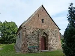 Die Kirche wurde im 16. Jahrhundert aus Feldstein mit Einfassungen aus Backstein ohne Turm neu errichtet. Die beiden Fachwerkgiebel und das Dach wurden bei einer Sanierung der Kirche erneuert. Dabei wurden die Dachgiebel senkrecht verbrettert.