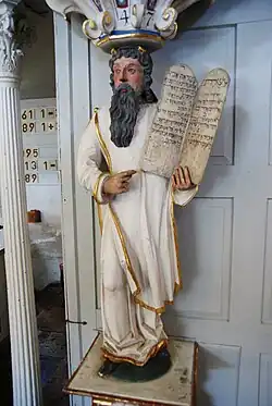 Die Kanzel wurde vermutlich ebenfalls von Johann Böhme geschaffen. Sie steht auf einer 1,18 Meter hohen Moses-Figur mit den Gesetzestafeln. Die Gesetze sind in Hebräisch geschrieben. Über dem Kopf wölbt sich die Kanzel zur 1,13 m hohe Brüstung und trägt die Jahreszahl 1647. In der fünfteiligen Brüstung stehen fünf 57 cm hohe geschnitzte Figuren. In der Mitte steht Jesus als Salvator. Zur rechten Seite stehen Lukas mit einem Stier und Johannes mit einem Adler, auf der linken Seite Markus mit einem Buch und Matthäus ohne ein spezielles Attribut.