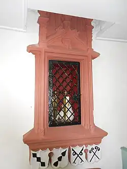 Im Jahre 1785 wurde die Kirche von Heinrich Ludwig von Knoblauch zum Teil abgerissen und neu errichtet. Nur der Chor blieb als Teil des ursprünglichen Gebäudes stehen, wovon heute der erste Tabernakel sowie das o. g. Heiratswappen zeugen.