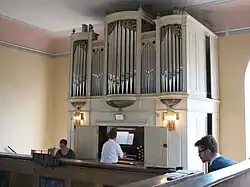 Die Orgel mit 15 Registern, zwei Manualen und Pedal hat gegenwärtig (Stand 2018) folgende Disposition:[3]