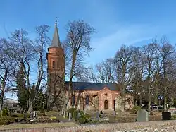 Im Kern stammt der rechteckige Bau aus Feldstein aus dem 15. Jahrhundert. Bei einer Restaurierung 1868 erhielt das Gebäude durch eingreifende Veränderungen die heutige Gestalt. Die Kirche erhielt einen westlichen Turm mit Obergeschoss aus Backstein und wurde um einen Chor mit polygonaler Apsis und eine Nordsakristei erweitert.