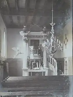 Das durchgehende Bankgestühl von 1904 wurde später durch einen Mittelgang aufgeteilt. Der mit Eisenbändern beschlagene eichene Opferstock mit der Inschrift ANO 1687 steht im Eingangsraum. Neben der Eingangstür des Hauptschiffs ist der ursprünglich vor der Kirche befindliche Grabstein des Pastors Peter Wilhelm Behrends aufgestellt.