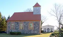 Die Kirche wurde Anfang des 19. Jahrhunderts auf rechteckigem Grundriss aus Feldstein errichtet. Die architektonischen Details von Fenstern, Türen und Gesimsen wurden aus Backstein gefertigt. Der westliche Fachwerkgiebel mit dem Dachturm wurde mit Brettern verblendet. Der Kanzelaltar stammt aus der Erbauungszeit der Kirche. Die Glocke wurde 1847 von F. Schünemann in Demmin gegossen. 2005 erhielt die Kirche eine Einmanualorgel des Orgelbauers Friedrich Löbling (Erfurt), die sich vorher in der Taufkapelle der Demminer St.-Bartholomaei-Kirche befand.[1]