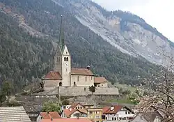 Die denkmalgeschützte Kirche Sogn Gion (rätoromanisch für Johannes der Täufer) in Domat/Ems im Kanton Graubünden steht am nördlichen Dorfrand am rechten Rheinufer auf der Tuma Turrera.