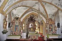 Im Schrein des barocken rechten Seitenaltars ist der Erzengel Michael mit Flammenschwert und Seelenwaage zu sehen. Assistenzfiguren sind der hl. Johannes Nepomuk links und Jakobus der Ältere rechts. Im Aufsatz ist ein Auge der Vorsehung angebracht.