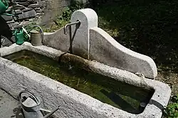 Vor der Kirche befindet sich ein steinerner Trog. In diesen läuft Quellwasser aus einem im 17. Jahrhundert installierten Drainagesystem, welches seinerzeit für die Wasserversorgung des Rittergutes diente. 2006 wurden die Holzröhrenleitungen instand gesetzt, so dass seitdem wieder Wasser den Trog füllt.