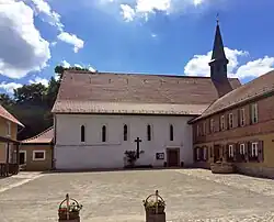 Die geostete, weiß verputzte Kirche hat einen rechteckigen Grundriss und wird von einem Dachreiter bekrönt. Die schmalen Fenster sind spitzbogig gestaltet. Die Ausstattung ist modern bis auf einen hölzernen Altaraufsatz aus dem 18. Jahrhundert sowie ein geschnitztes Vesperbild, das auf die Mitte des 15. Jahrhunderts datiert wird.