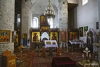 Die Kirche besaß eine Kreuzkuppel, welche von vier quadratisch angeordneten Säulen getragen wurde. Die Außenseite ist durch herausragende Lisenen betont, die wie auch das Gebäude selbst, abgerundete Ecken besitzen. Im Vorderteil des Kirchenschiffs befindet sich die Chor-Empore, die über schmale Stufen an der Westwand erreichbar ist. Zwei weitere Treppen wurden in den Wänden der seitlichen Apsiden wiederentdeckt, und noch ist ihre Bedeutung unklar. Der Kirchboden ist mit Keramikfliesen belegt, die ein dekoratives Muster bilden. Der Innenraum war einst gesäumt mit unzähligen eingebauten Krügen. Gewöhnlich wurden diese in ost-orthodoxen Kirchen als Resonatoren benutzt. Hier dienten sie dem dekorativen Effekt, und aus diesem Grund wurde auch das Hauptschiff nie bemalt.