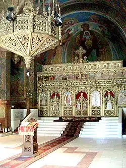 Die Architektur wurde von dem Byzantinischen Stil der Hagia Sophia in Istanbul inspiriert. Der Boden im Inneren besteht aus einer Kombination von weißem und rosa Marmor aus Rușchița. Die Malereien im „fresco bono“–Stil stammen von den Künstlern Catul Bogdan (Apsis) und Ioachim Miloia[5] (Kuppel). Die Bemalung der Kuppel wurde 1958 mit 18 biblischen Szenen von Anastasie Demian ergänzt, sowie zwischen 1983 und 1985 von Professor Victor Jurca restauriert und um 70 Szenen erweitert. Ikonostase, Kronleuchter und Eingangstor wurden von Ștefan Gajo aus Lindenholz, und die Sitze und Bänke von Ștefan Novac aus Eichenholz gefertigt.