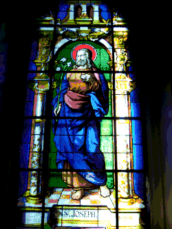 Auf dem einzigen noch erhaltenen Originalfenster aus dem Jahre 1883, das sich im rechten Nebenschiff befindet, ist der Heilige Josef dargestellt.