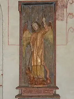 Mehrere Holzfiguren aus dem Mittelalter findet man an mehreren Stellen in der Kirche. Eine Skulptur von etwa 1180 mit einem dazugehörigen Schrein von 1230 stellt den Schutzheiligen Michael dar. Der übrige Kulturschatz stammt aus der Mitte des 15. Jahrhunderts, so eine weitere Skulptur des Erzengels Michael, des St. Antonius, des Schmerzenträgers und des St. Erik. Der hölzerne Kopf im Turmgewölbe wurde aus åländischer Kiefer um etwa 1185 geschnitzt.