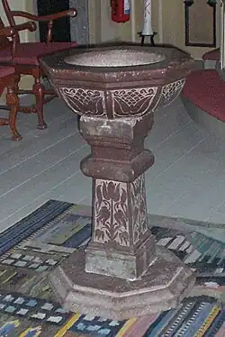Der Taufstein wurde im Jahr 1670 gestiftet und ist aus öländischem Kalkstein gearbeitet. Im Nordwestteil der Kirche hängt das Model des Segelschiffs Nyckeln, welches 1679 gesunken war.