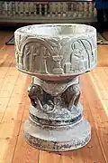 Zum Inventar gehört eine gut erhaltener Taufstein vom Steinmeister Majestatis aus dem 12. Jahrhundert. Die Farbspuren scheinen ursprünglich zu sein. Die Reliefs an der Cuppa zeigen: Die Verkündigung Maria und Elisabeth, Christi Geburt, die Hirtenverkündigung, die Anbetung der Könige. Am Fuß des Taufsteins beißen vier Drachenköpfe in Schlangen. Drei mittelalterliche Kruzifixe sind erhalten. Das Triumphkreuz an seinem ursprünglichen Platz im Triumphbogen ist eine Arbeit vom Ende des 12. Jahrhunderts. An der Nordwand des Chores hängen zwei Prozessionskruzifixe, von denen das linke von ca. 1200 und das rechte aus dem 14. Jahrhundert stammt.