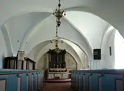 An einer älteren Wand des Chors findet sich das Fragment eines Bildes aus dem 15. Jahrhundert. Es stellt die Geschichte der Heiligen Ursula und einige der 11.000 Jungfrauen dar. In den Jahren 1939 und 1940 wurden Wandbilder restauriert.