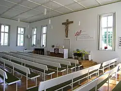 Die Gemeinde feiert Gottesdienste meist nicht in ihrer winzigen Kirche (90 Sitzplätze), sondern im Gottesdienstraum (etwa 380 Plätze) des 1972 nebenan errichteten evangelischen Gemeindezentrums.