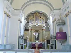Die Orgel befindet sich über dem Altar und ist in dessen Aufbau integriert. 1813 wurde sie von Johann Thois gebaut, 1822 gemeinsam mit dem Altar vergoldet und 1908 vom Orgelbauer Karl Einschenk renoviert. Spätestens ab 2010 war die Orgel nicht mehr spielbar. 2013 konnte sie dann durch die Honigberger Orgelwerkstatt komplett restauriert werden. Sie verfügt über 18 Register auf zwei Manualen und Pedal.[1][2]
