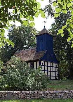 Der Baustil der Kirche entspricht nordfranzösischen Fachwerkbauten und wird deshalb in die Region eingewanderten Hugenotten zugeschrieben. Die Ständer des Fachwerks stehen verhältnismäßig dicht. Sie tragen ein ausladendes Traufgesims. Die Kirche besitzt ein Satteldach, wobei die Konstruktion auf eine ursprüngliche Eindeckung mit Reet schließen lässt. Diese wurde nach der Sanierung des Gebäudes erneuert. Nach Osten verfügt die Kirche über einen dreiseitigen Abschluss. Auf der Westseite befindet sich ein verbretterter Turmaufsatz. An der Nordseite ist eine kleine Vorhalle angefügt.