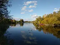Blick über den Kirchsee von einem Steg in dessen Südwesten (Oktober 2022)Kirchsee von Nordost